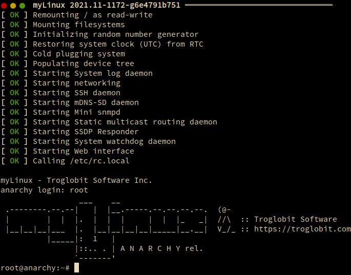 Note: this is an example, with a limited number of services included. To use in a full-blown production system, you can quickly build your own image from a myLinux base. I recommend the Buildroot manual for help on how to extract the full potential of your system.